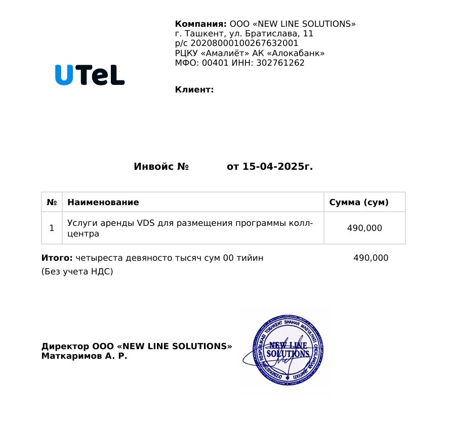 Bank orqali to‘lov uchun hisob-fakturani (invoysni) tayyorlash