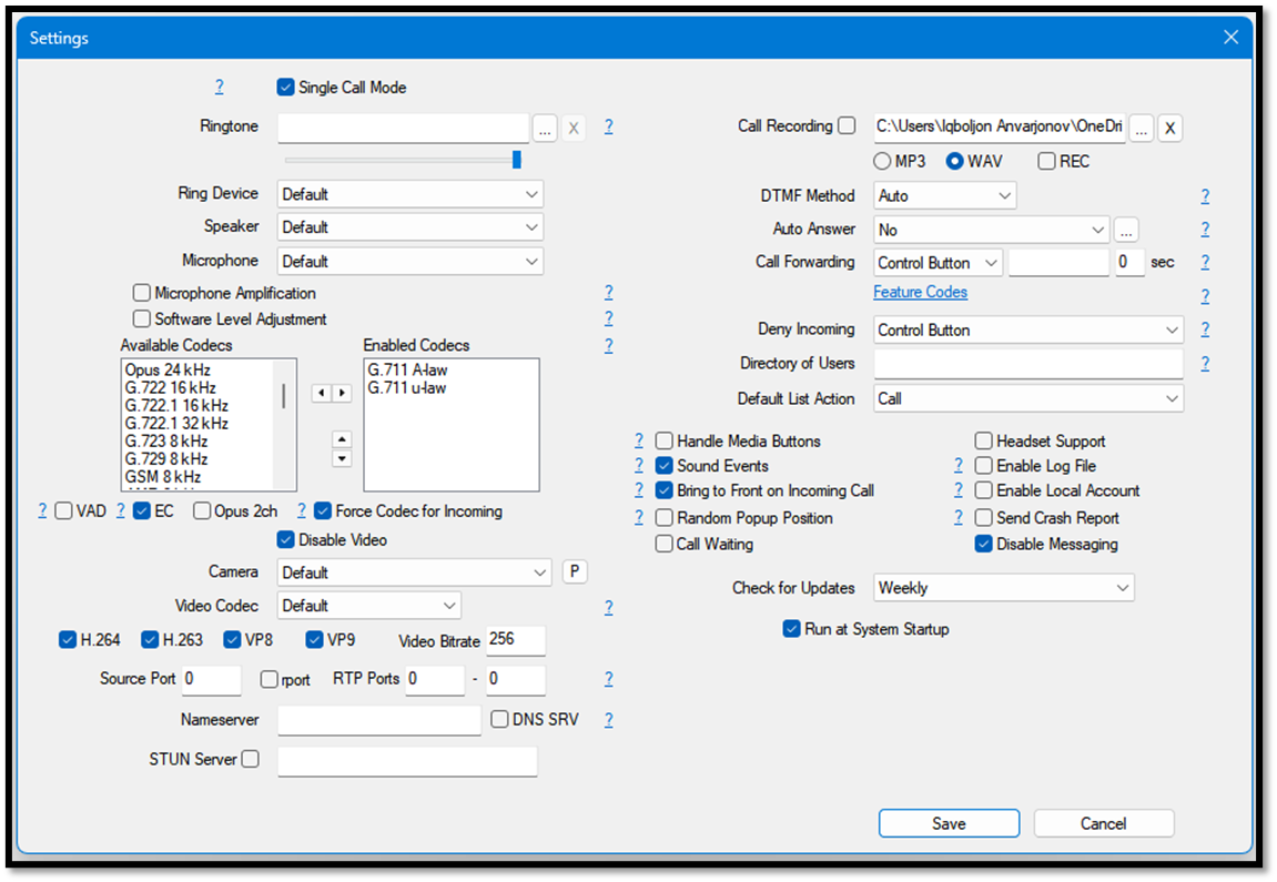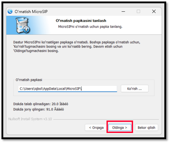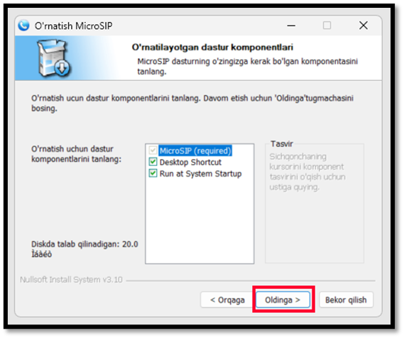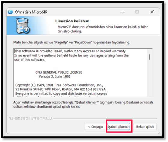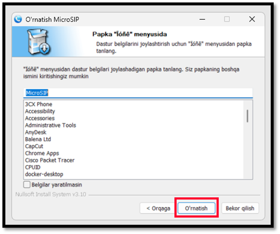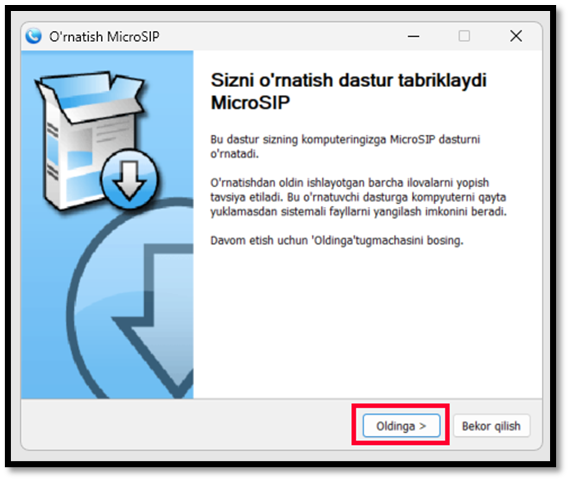 - https://www.microsip.org/downloads/current shu link orqali MicroSIP dasturini yuklab oling: