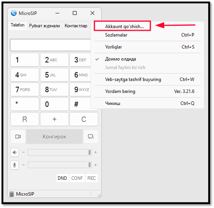 - Yangi akkaunt qo’shish uchun ‘Akkaunt qo’shish…’ bo’limiga o’ting: